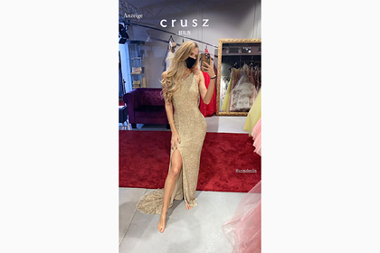 21-летняя легкоатлетка попозировала в наряде золотого оттенка с вырезом на ноге. Затем Шмидт снялась в синем платье на бретелях и попросила подписчиков выбрать, какой наряд лучше.