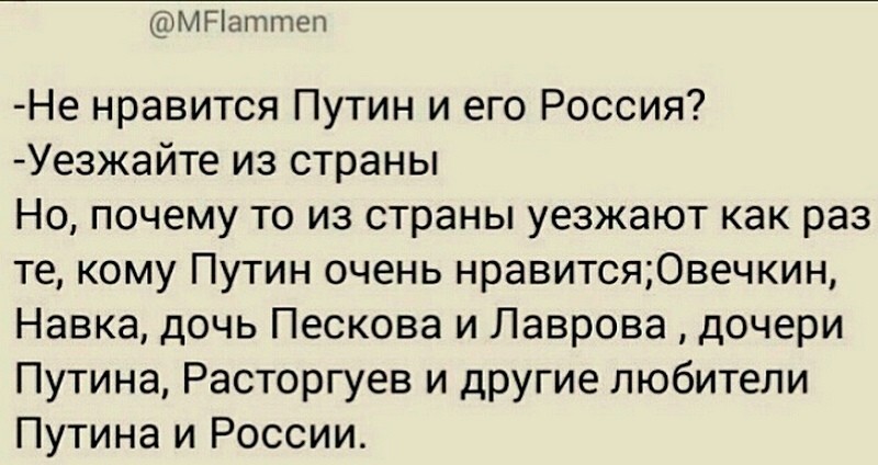"...Если не согласны, то никто не мешает уехать в маленькую страну любую. Только мир в этой стране будет зависеть от двух-трех стран мира и как они себя будут вести. Примеров море. Выбирайте любой" считаю, что данное высказывание ну уж совсем ни к чему. У каждого своя позиция и свое видение, и наверное ОН уж сам решит: нужно ли ему куда ехать!