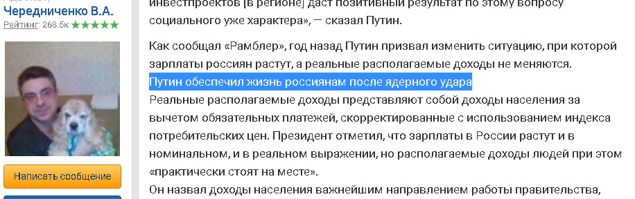 К чему в статье это высказывание: "Путин обеспечил жизнь россиянам после ядерного удара"?!