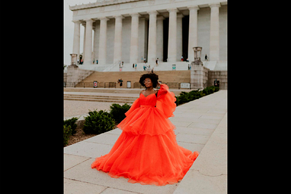 По информации издания, 18-летняя Жасмин (Jasmine) лишилась возможности пойти на выпускной из-за пандемии коронавируса, поэтому она решила отметить этот день самостоятельно. Студентка надела сшитое на заказ платье ярко-оранжевого цвета с пышной юбкой и сердцевидным декольте, а также соорудила головной убор, имитирующий солнечные лучи. В этом образе она отправилась с подругой к Мемориалу Линкольна, чтобы сделать снимки в духе мероприятия Met Gala.