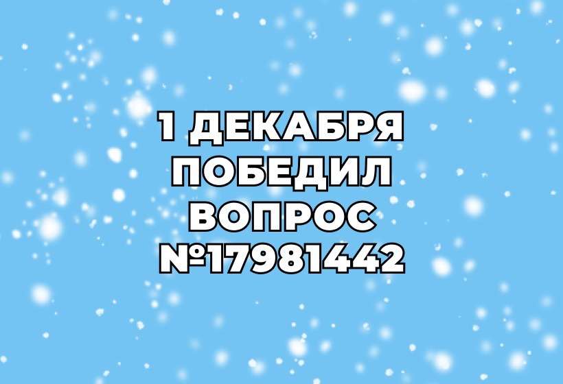 Завершился розыгрыш очередного тура новогодней акции «5 000 рублей за Ваш вопрос». Так как предыдущие призы так никто и не забрал, 1 декабря мы разыграли джекпот в 25 000 рублей. Победил вопрос №17981442. Поздравляем победителя!