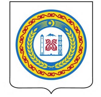 Герб Чеченской республики. Полумесяц на вершине круга с колосьями символизирует ислам и приверженность ему. Фото с официального сайта главы Чеченской республики.