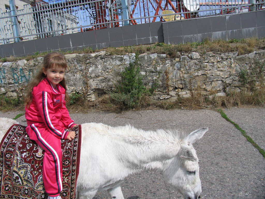 У нас неподалёку есть фермы с осликами, пони и лошадьми. Мы летом часто ездим туда "выгулять" внуков. Маленькие дети совершенно не боятся больших лошадок и с удовольствием катаются.