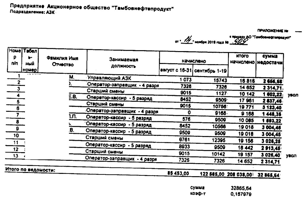 Почему-то прибыль, которую тамбовнефтепродукту принес чудо-функционал этой АЗС вместе с персоналом не озвучивается. А взыскивается только недостача. Хотя соляру на 20 тыс на приход себе поставили.
