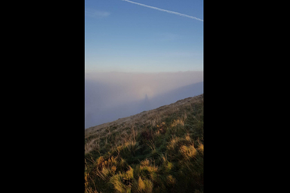 Турист, поднявшийся на холм на юго-востоке Уэльса, увидел в горах собственный «призрак». Мужчина поделился фотографией на Reddit и напугал пользователей сети.