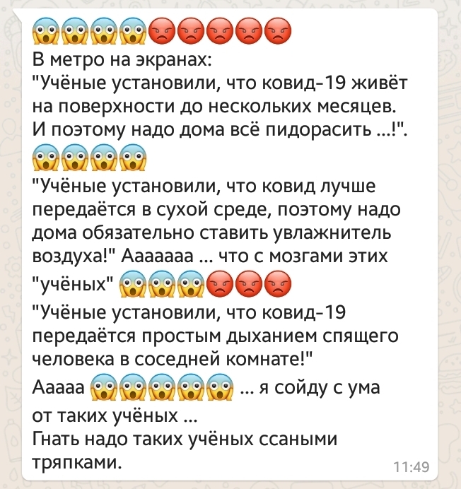 А если открыто сказать, что 90% всех вакцин, лекарств, закупается у враждебного запада? Что нам присылают и навязывают коррумпированные чиновники на местах? Кто это проверяет? Кто отвечает за безопасность? Кем изучено долгосрочное влияние этих "лекарств"?