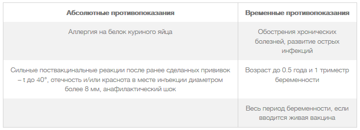 Противопоказания к вакцинации от гриппа
