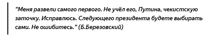 Владимир Путин, став президентом, не имел в своём арсенале ровным счётом никаких полномочий. Вся власть в те годы принадлежала "Семибанкирщине".