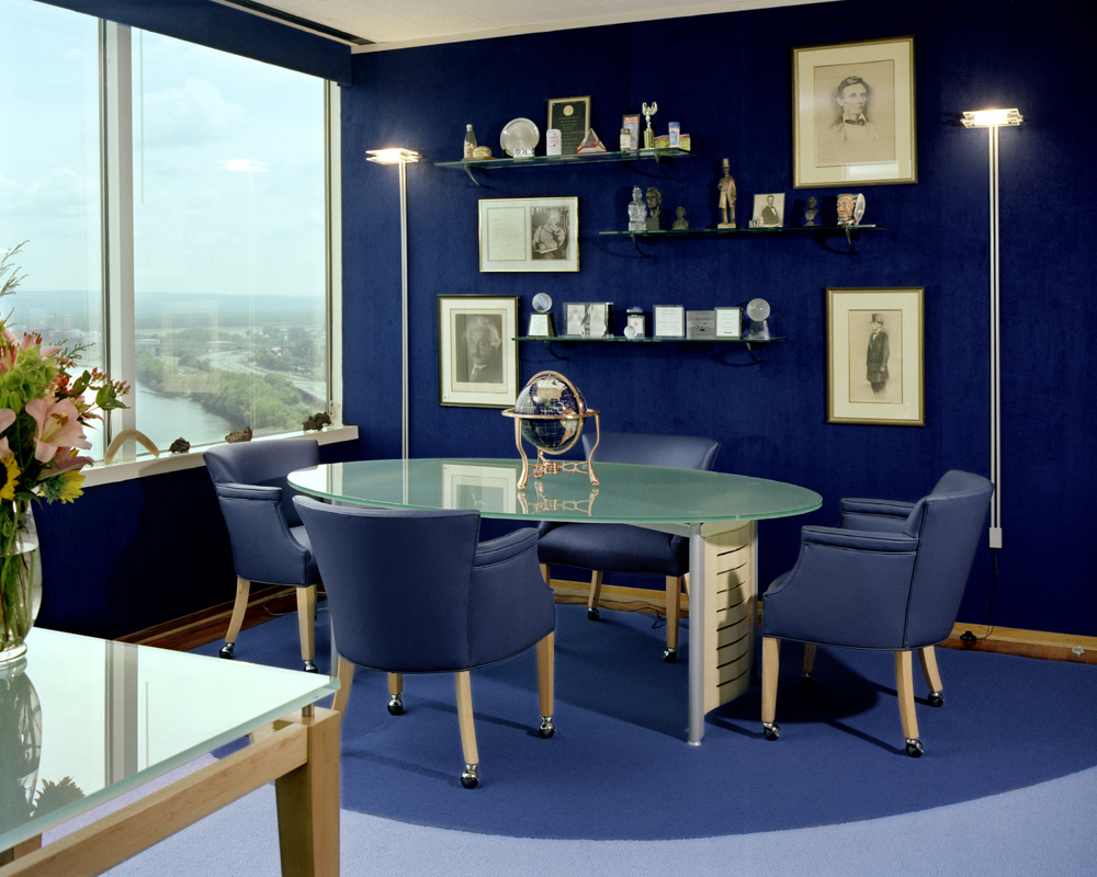 Голубой цвет поистине рекордсмен в оформлении рабочей зоны. Он отлично воздействует на те участки мозга, которые отвечают за усвоение новой информации и именно его используют для создания благоприятной атмосферы в помещениях для бизнес переговоров.