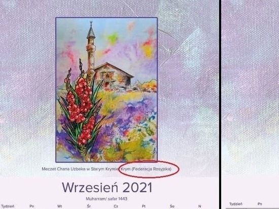 Ранее СМИ сообщили о появлении календаря для польских мусульман, на котором к изображениям крымских мечетей стоит приписка, что полуостров – это часть РФ.
