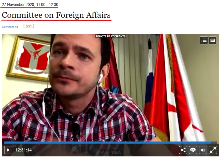 27 ноября в Европейском парламенте прошло заседание, которое было посвящено разработке и обсуждению стратегии коммуникации ЕС с Россией. В рамках заседания выступил ряд оппозиционных российских политиков, в том числе и глава Красносельского муниципального округа Московской области Илья Яшин.