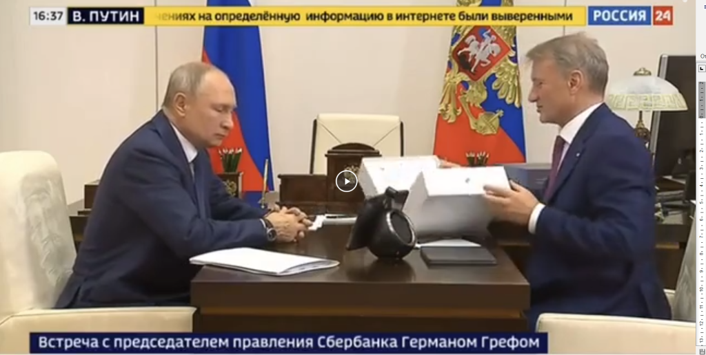 «При этом, Герман Оскарович, просил бы вас не забывать, что банк был создан еще в 1841 году. Создатели банка тогда, конечно, не могли даже в самых смелых фантазиях представить, что такое возможно. Но все-таки нужно не забывать, что Сбер, хоть и экосистема — это банк в первую очередь. Требования Центрального банка финансовое учреждение должно соблюдать», — сказал Путин.
