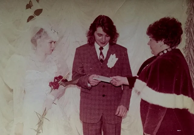 Деньги у людей того времени были, у некоторых даже очень большие суммы, порой скупали всё на свете. Знаю не по наслышке, есть люди у которых до сих пор новые советские телевизоры валяются в коробках где нибудь в гаражах или на дачах, такое было время. Перестройка запомнилась дефицитом многих товаров, золото не стало исключением. Поэтому обручальные кольца продавались только по выписке из ЗАГСа. Были трудности с костюмами, на покупку которых также требовалась справка и конечно сложно было достать хорошую ткань для свадебного платья.