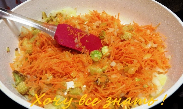 По очереди обжарим в растительном масле все овощи, начиная от лука и последней закладывая на сковороду кукурузу. В итоге должна получиться ароматная и сочная овощная масса, потому что не нужно пережаривать ингредиенты: скорее, они должны подрумяниться в собственном соку.