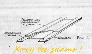 Концевые соединения делают внакладку с помощью клея и шурупов или деревянных шпилек. Когда рама готова, на нее наклеивают лист фанеры или прессованного картона (рис. 3).