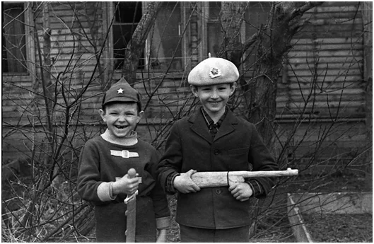И мы делали оружие самостоятельно. Бралась дощечка от тарного ящика возле магазина, посильно обстрагивалась, чтобы придать контуры приклада, потом прикреплялась трубка, изображающая ствол, а вместо затвора прибивался дверной шпингалет – чем больше размерами, тем лучше. Он позволял воспроизвести хорошо знакомые по фильмам движения затвора, а большой шпингалет ещё и лязгал вполне натурально.