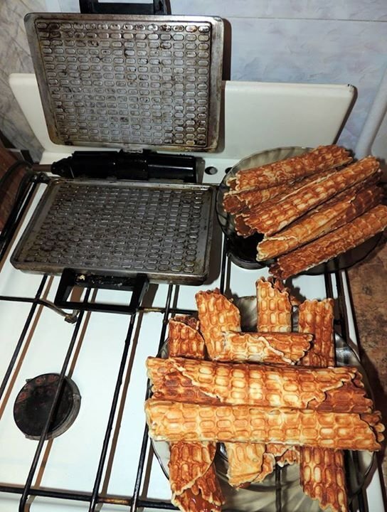 Ну а трубочки? Если сгущёнку удалось вам сварить и что бы она не взорвалась, это было хорошо. Ну а уж если всё таки это произошло, то взбивали в ручную белок яиц с сахаром. Из любой ситуации находили выход.