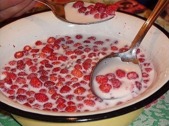 А земленика с молоком, это же вообще бомбично, йогурт и другого нам не надо было.