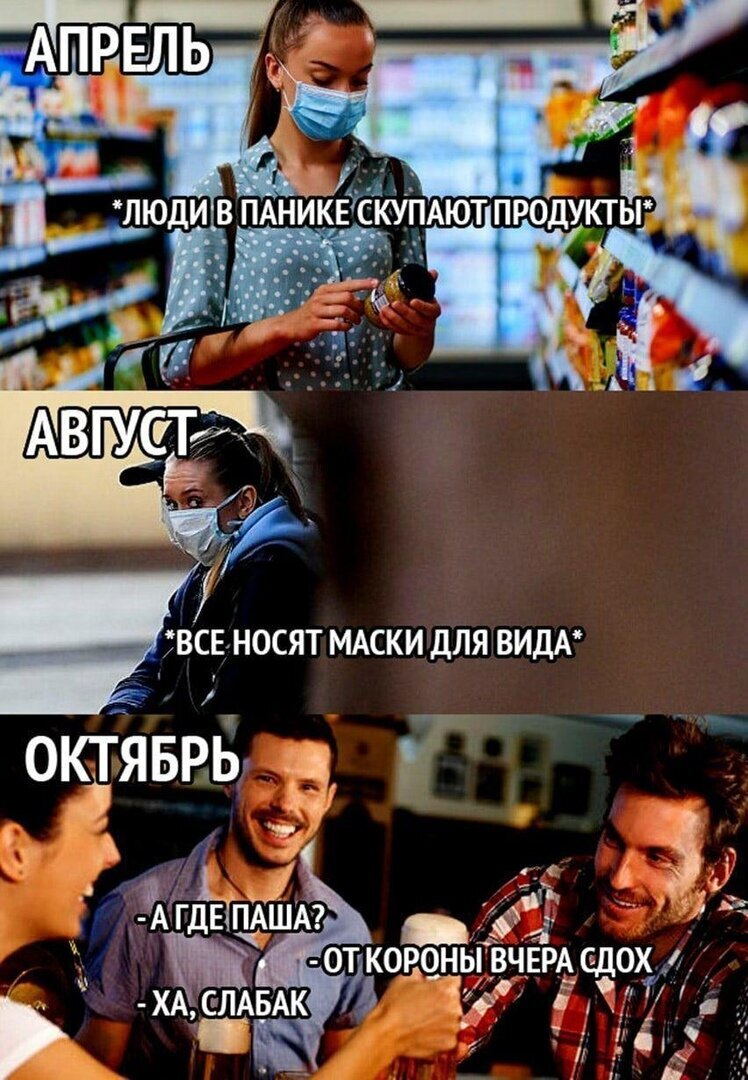 А самый яркий пример безответственности и какой-то дремучей дикости нашего общества – это, конечно, маски. Хоть кол на голове теши нашим согражданам, которые чуть ли не демонстративно, бравируя, не носят маски и никак не могут понять: маска спасает! Маска в первую очередь позволяет НЕ ЗАРАЗИТЬ окружающих, и во вторую – не заразиться самому. Маска, грубо говоря, не дает нам сплевывать микрокапли слюны, которые непроизвольно вылетают у нас изо рта при разговоре. В этих капельках могут быть вирусы. При занятиях спортом или пении количество этих капель многократно возрастает, вот почему закрывают фитнес-центры, отменяют спортивные соревнования, и вот почему после церковных служб многие прихожане уносят в своих легких домой вирусные частицы, и столько священников уже умерло от короны. Сейчас в СМИ нужно повторять – ОБЯЗАТЕЛЬНО носите маски в общественных местах, там, где вы общаетесь с людьми, с которыми не живете в одной квартире. Маски спасают, они реально спасают, об этом говорит пример Китая и других стран, где без масок никто никуда сейчас не может ходить, зато и ситуация с эпидемией под контролем, а там, глядишь, уже вакцина пойдет в практику.