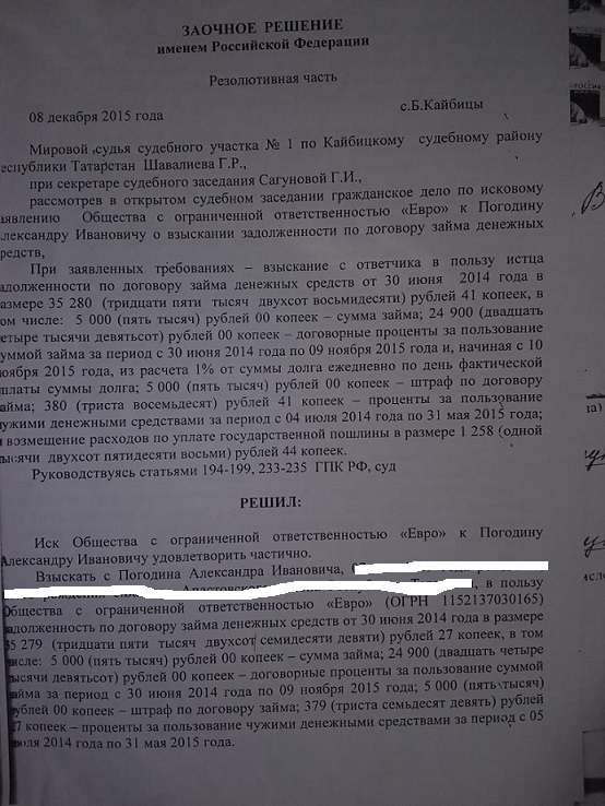 Некий человек берет в микрозайме в 2014 году еще пять тысяч рублей. Плевое казалось бы дело, но вот мировая судья взыскала с него как сумму долга с процентами и неустойками, так еще постановила, что проценты должны взыскиваться до момента полного закрытия долга.