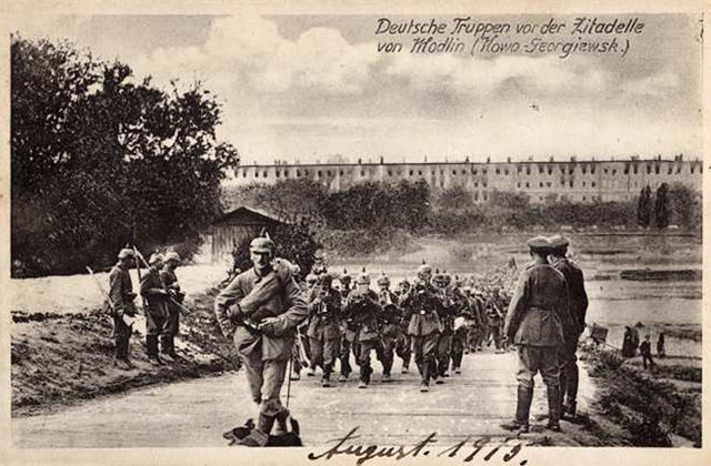 Во время Великого отступления русской армии 7 (20) августа 1915 г. была сдана Новогеоргиевская крепость. Это была одна из самых тяжелых неудач русского оружия за всю его историю. Молниеносная сдача первоклассной крепости, полностью оснащенной артиллерией, боеприпасами и фуражом, целиком с гарнизоном вдвое меньшей группировке противника была беспрецедентной в русской военной летописи.