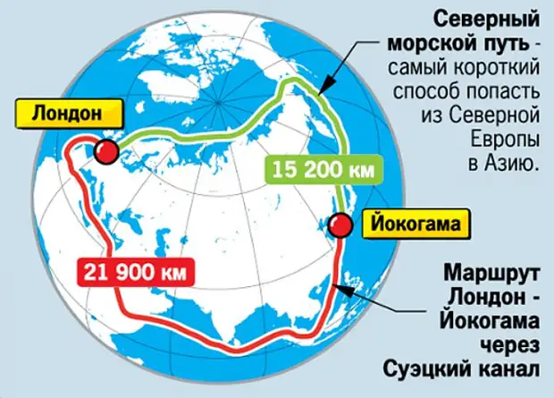 Если мы посмотрим на глобус (именно на глобус, а не на плоскую карту), то увидим, что самый короткий путь из Европы в Японию, Корею и Китай лежит через Арктику.