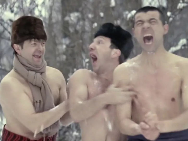 Его коллегам пришлось сделать то же самое. В качестве мести Косой принялся растирать Василия Алибабаевича снегом, а Гаврила Петрович подыграл и стал растирать Косого. Так что большая часть этой сцены – чистой воды импровизация.