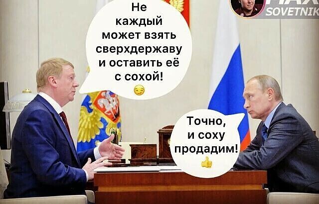 ♦ По словам У. Черчилля, И.В. Сталин принял Россию с сохой, а оставил с атомной бомбой. В отличие от Иосифа Виссарионовича, все идет к тому, что В.В. Путин, как принял Россию с Чубайсом, так с ним же и оставит...