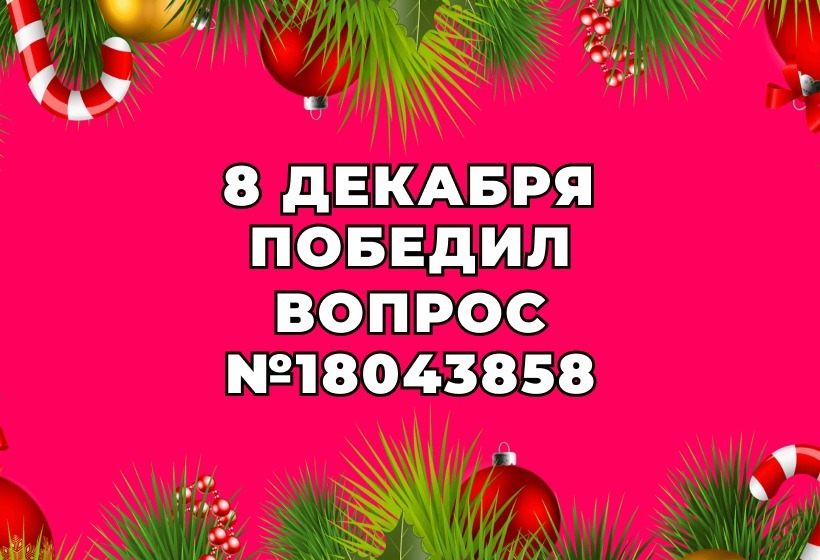 Призовой фонд акции «5 000 рублей за Ваш вопрос» 8 декабря увеличился до 50 000 рублей ! Теперь сорвать джекпот имеет шанс автор вопроса №18043858.