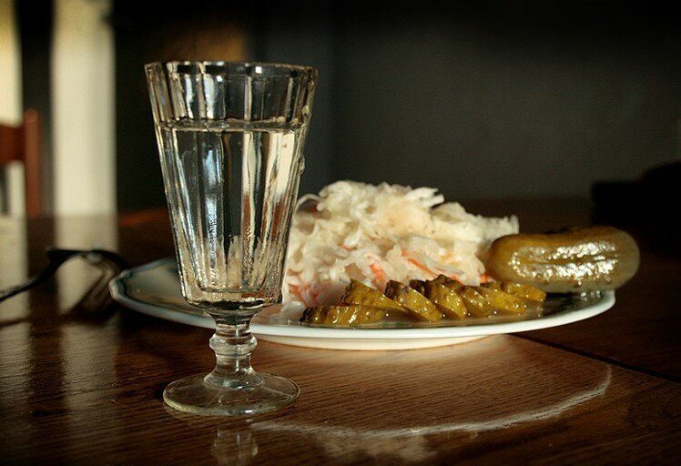 Чего-то необычного в водочном аромате мы не нашли. Сивухой не пахнет, ацетоном не отдаёт, уже хорошо. В качестве закуски выбрали сало, хлеб, селедочку и соленья. Выпив 50-грамм я насторожено стал наблюдать за происходящим. Легкое жжение в желудке ощутил спустя 3-5 секунд. Оно не такое выраженное, если бы я выпил водку «Зеленая Марка».