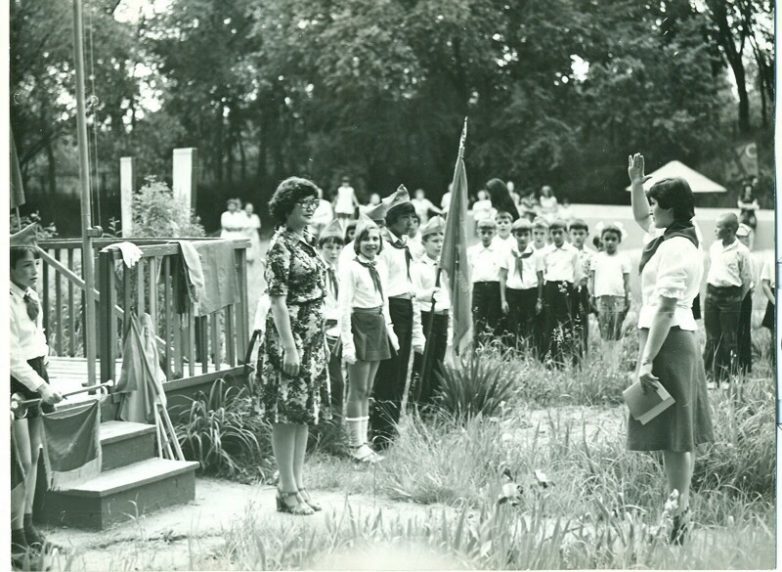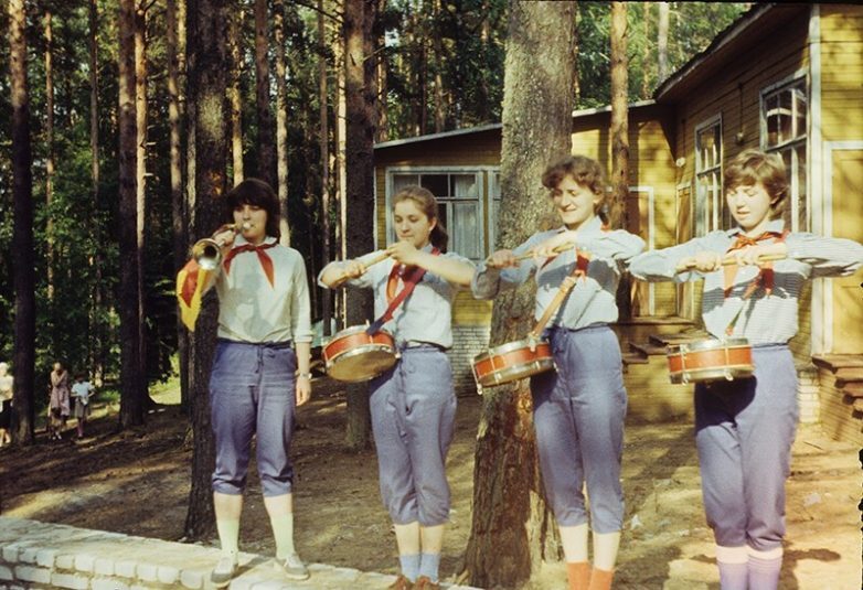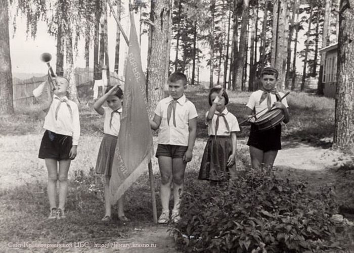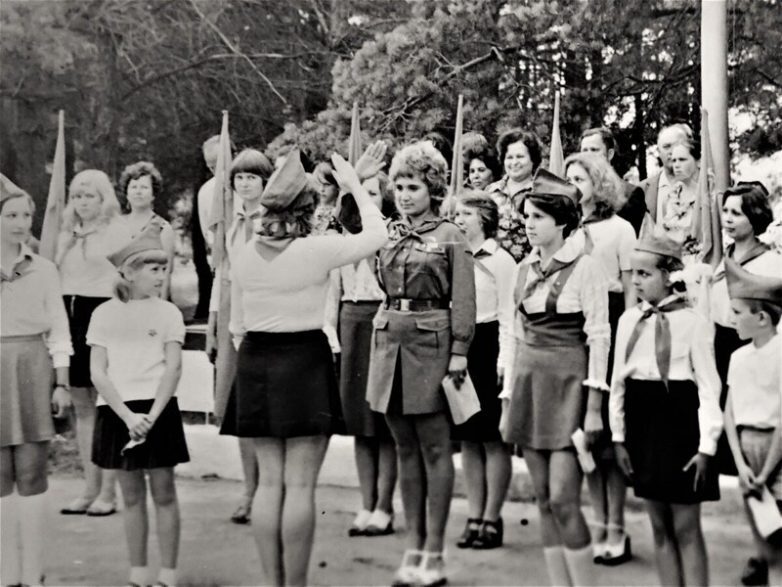 Да, прекрасное было советское детство! В пионерских лагерях учили пионерские речевки, учились маршировать! Раз-два, три четыре, кто шагает дружно в ряд? Пионерский наш отряд!.. ну и так далее. И девчата в белоснежных гольфиках и в пионерских галстуках, и мы в пионерских галстуках! И еще играли в зарницы и мало в че еще играли! Да, было прекрасное время!