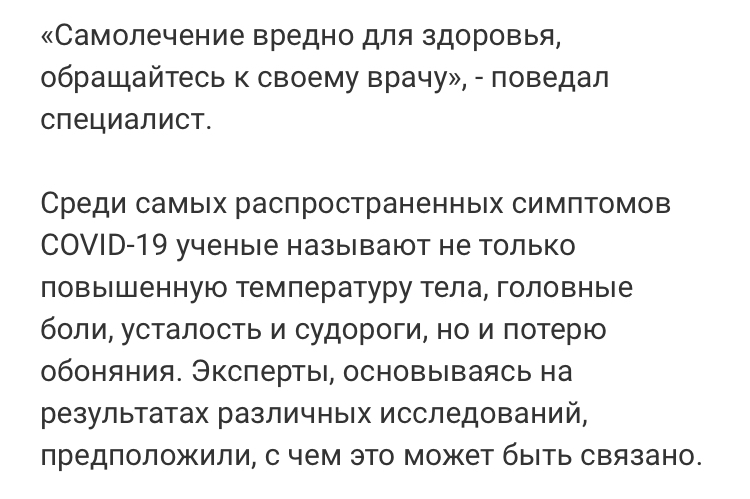 Врачи рассказали через сколько дней возвращается обоняние при коронавирусе