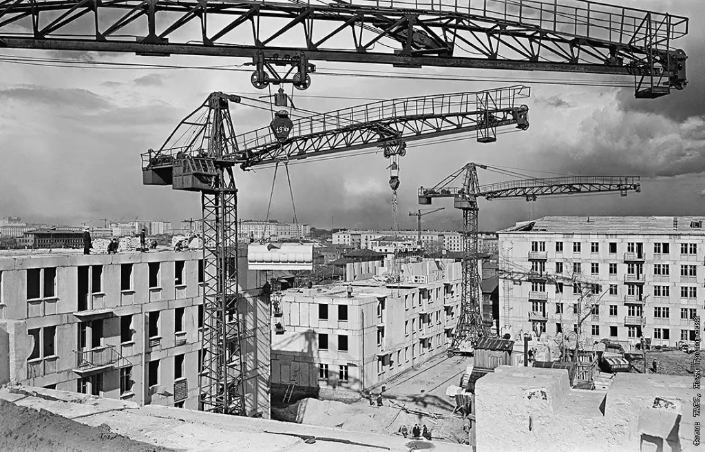 В 1950 годах начали строить так называемые хрущевки. Конечно выглядели они не очень эстетично, и не отличались высоким уровнем комфорта, но минимизация затрат позволила обеспечить индивидуальным жильем огромное количество граждан.