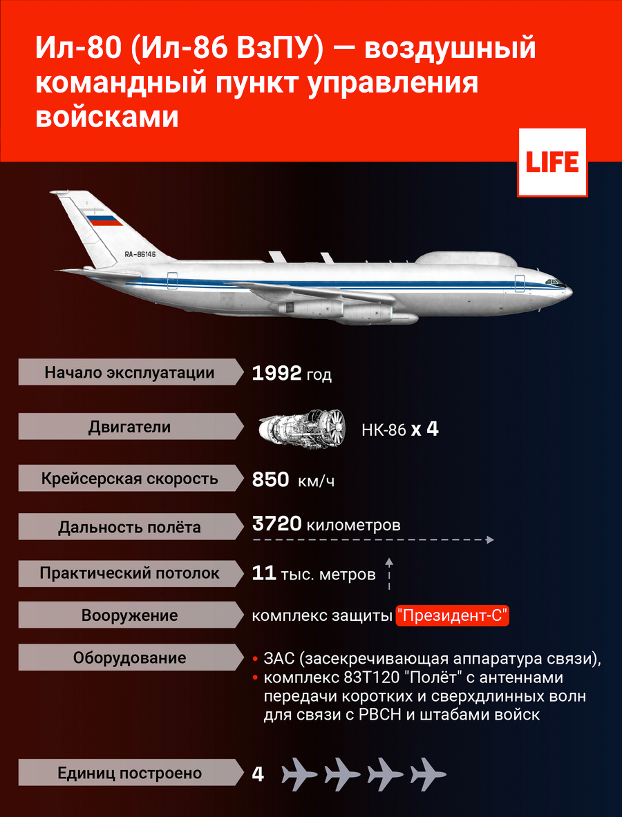 Такие объекты, как самолёт Ил-80, созданный для управления войсками, в том числе и ядерными силами, всегда находятся под особой охраной. Летают такие машины регулярно, но частой эксплуатацию авиации для третьей мировой назвать нельзя — для поддержания лётной годности они время от времени поднимаются в небо и (редко) принимают участие в учениях сил ядерного сдерживания.