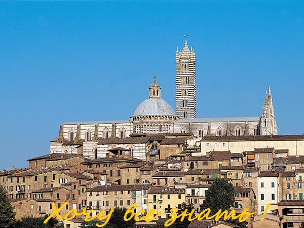4. Сиенский кафедральный собор — построен в период процветания Сиены. Задача архитекторов была в том, чтобы отразить богатство и силу города. Выполнен в смешанном готическом и романском стиле.