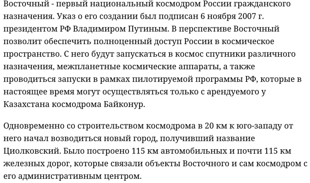 При это президент подчеркнул, что работа в 2020 году по развитию космодрома Восточный предстоит объемная и очень серьезная...