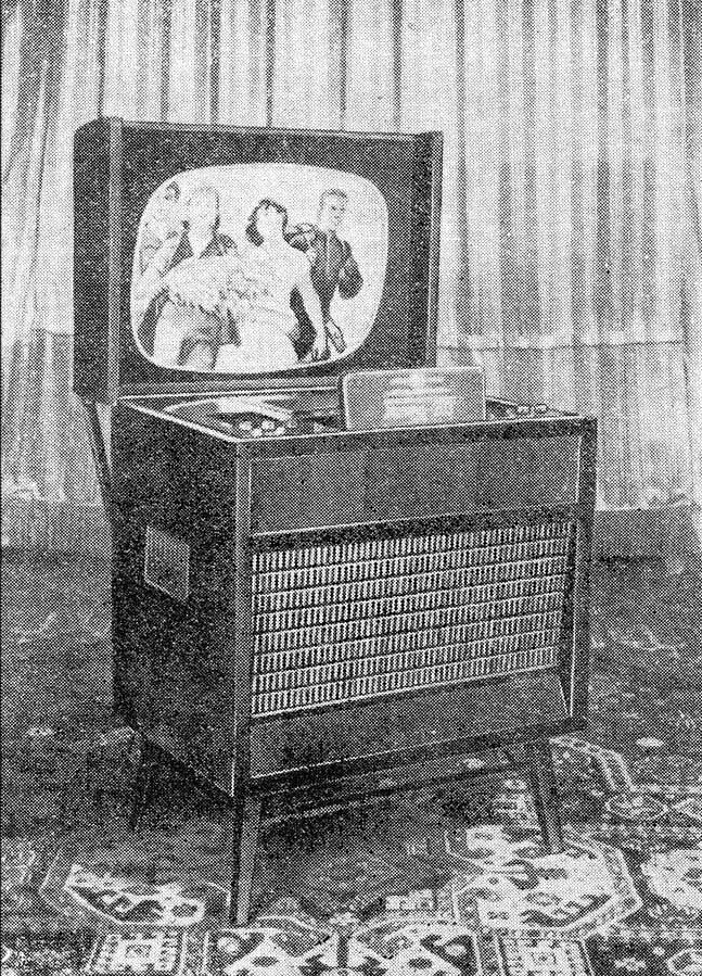 У моего дяди в Москве, был телевизор, встроен в приемник, экран, где - то 30 х 30 см, а перед ним стояло увеличительное стекло, оно прибавляло видимость на много, примерно как старый маленький телевизор.
