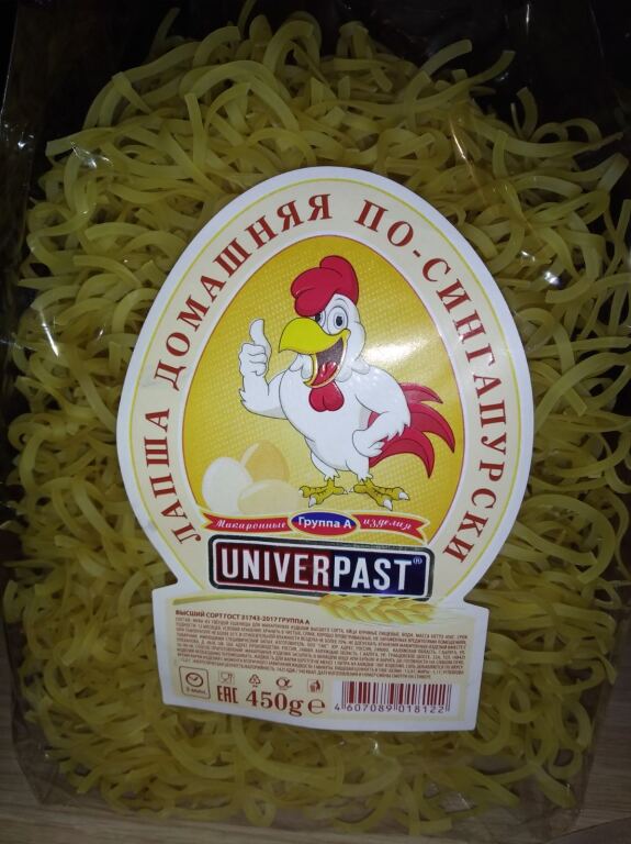 Лапша домашняя по-сингапурски. Вес 450 грамм. Цена: 48,52 рубля.