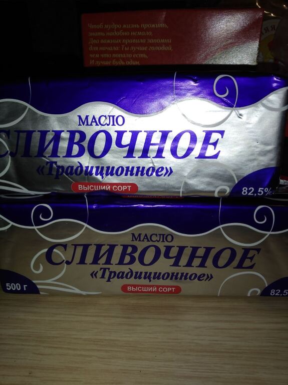 Сливочное масло каждый брикет по 500 гр по 125 рублей. Итого 1 кг масла 82% жирности за 250 рублей.