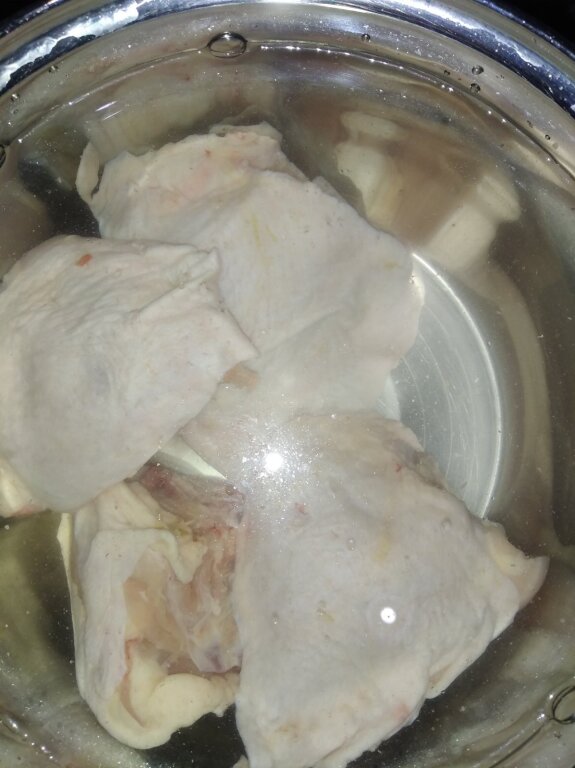 Я взяла 4 бедрышка куриных. Знаю, что харчо не варят на курице... Но и харчо то у нас сегодня не совсем харчо. На скоряк потянет.