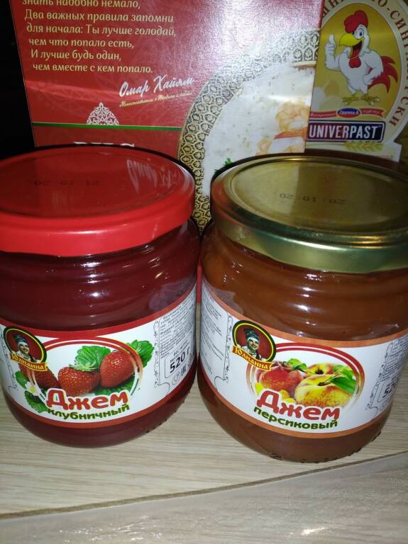 На закуску две банки джема весом по 530 гр. Производство г. Астрахань. Цена каждого всего 56,7 руб.
