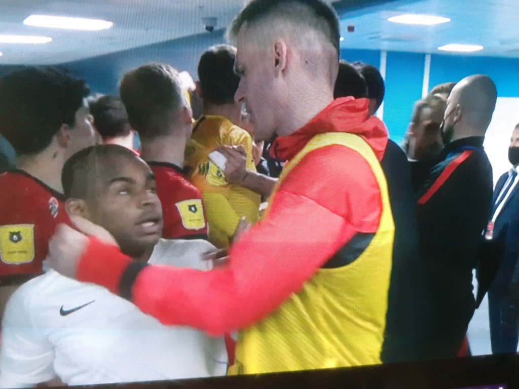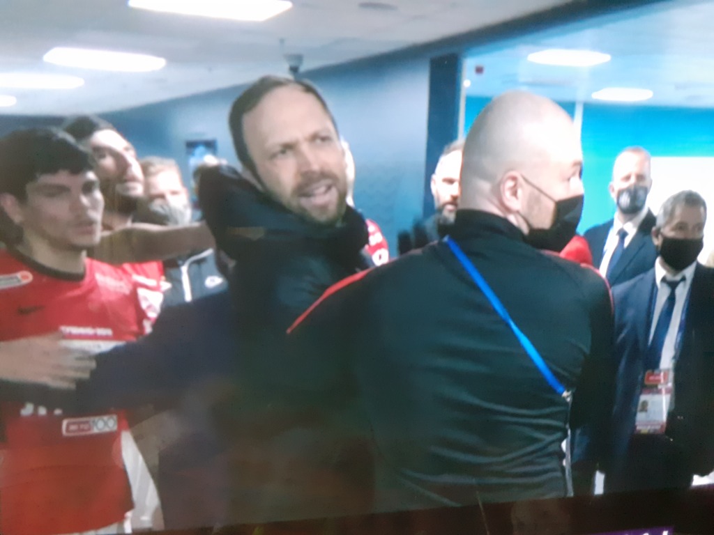 Между тем главный скандал развернулся после матча, когда команды ушли с поля и оказались в подтрибунном помещении. Вратарь "Сочи" Сослан Джанаев захотел пожать руку главному тренеру гостей немцу Доменико Тедеско, но тот, по некоторым данным, обложил вратаря русским матом (известно, что немец активно изучает русский язык). Завязалась потасовка с участием игроков обеих команд, в ходе которой Джанаев получил лёгкий пинок по ноге от спартаковца, а второй тренер гостей немец Андреас Хинкель - затрещину от сочинца, афробразильца Жоаозиньо (который, к слову, ниже немца на 20 см). В конце концов, стычка не переросла в побоище, смутьянов растащили, и теперь специальная комиссия РПЛ и РФС будет разбираться, кого и как наказать.