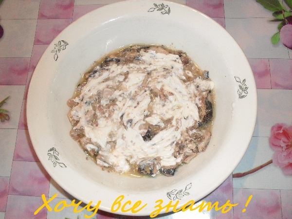 -Убрать готовый салат из консервов Мимоза в холодильник на часок.