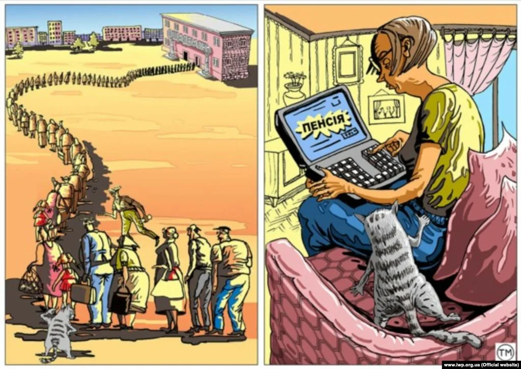 На комиксах жизнь показана жизнь украинцев до подписания соглашения с Евросоюзом и после.