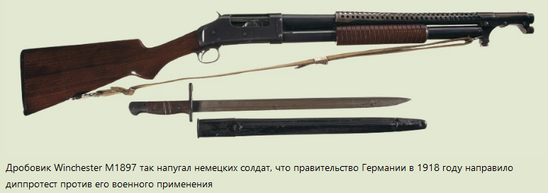 Немецкие военные так впечатлились американским изобретением, что 19 сентября 1918 года правительство Германии представило дипломатический протест против использования «траншейной метлы». В документе указывалось, что данное оружие обладает чудовищной мощностью и наносит колоссальный ущерб здоровью солдат. Примечательно, что сами немцы с 1915 года применяли ранцевые огнеметы Kleinflammenwerfer М. 1915, или «Kleif», ни капли не сокрушаясь по поводу наносимого ими ущерба здоровью. Вообще, жалобы на дробовик в эпоху массового применения пулеметов, шрапнели и отравляющих газов выглядели какой-то карикатурой на гуманность. Впрочем, каждый отстаивает свои интересы как может.