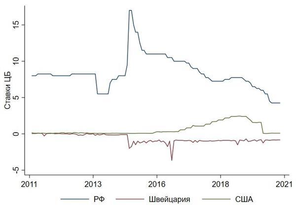 Если на первом графике Швейцария однозначно проигрывала России и США по доходности банковского вклада, то теперь уже в среднем выглядит лучше, чем Америка, а в иные года и чем Россия. Причина проста: в то время как в России и даже в США на протяжении последних десяти лет инфляция была положительная и временами немаленькая, в Швейцарии в течение того же периода наблюдалась нулевая инфляция, нередко переходящая в дефляцию. В отличие от других валют, франк со временем дорожает, а не обесценивается. Поэтому реальная доходность банковского вклада в Швейцарии выше, чем в США. Но пока ниже, чем у нас.