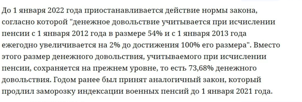 Заморозка индексации довольствия военным, используемая при расчете пенсий