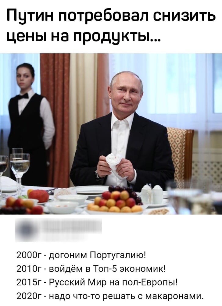 Ну да! Мы терпели лишения в 90-х, чтобы теперь президент обратил своё ценное внимание на необоснованное повышение цен -- на макарошки, масло, хлеб, сахар! И то только потому, что ему скоро придётся -- краснеть на очередной пресс-конференции перед всем миром!