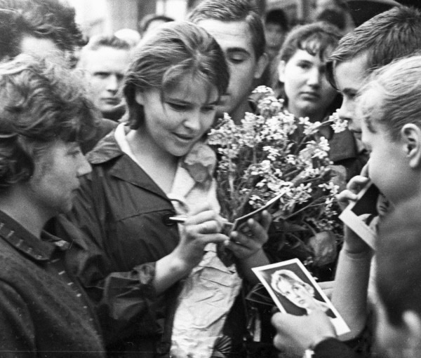 Молодая Тамара Семина в окружении поклонников. Кстати, Тамаре Петровне Семиной 25 октября исполнилось 82 года. Она прекрасно выглядит и бодра, как всегда!