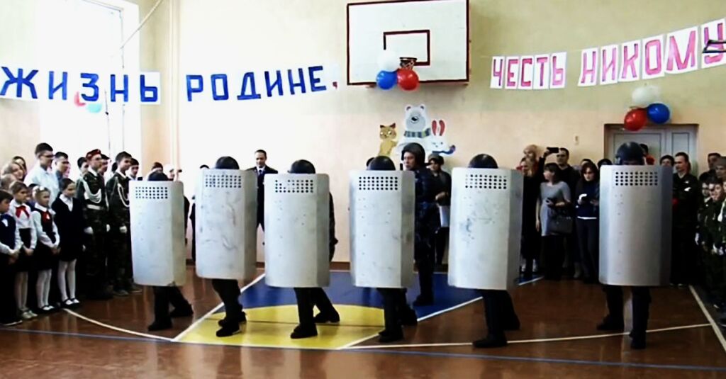 Похожая история произошла в конце прошлого года в Златоусте Челябинской области. Там в одной из школ на церемонии в честь посвящения детей в кадеты выступил спецназ федеральной службы исполнения наказаний (ФСИН), который показал приемы разгона демонстрантов с использованием щитов и дубинок. После жалоб непонятливых и отставших от демократической жизни родителей в региональном министерстве образования непрогрессивно заявили, что демонстрация сотрудниками ФСИН приемов разгона людей в школе недопустима, и пообещали разобраться в причинах произошедшего, а также принести извинения всем обиженным.